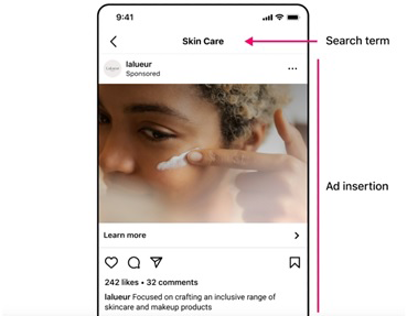 Ads will show up when the Instagram users make a search for content, product or businesses in “Ads in search results” which is in testing mode. For example, when searching for “skin care”, content with the tag “sponsored” will appear among the results.They plan to launch this placement globally in the coming months.